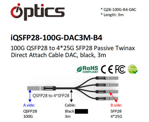 - iQSFP28-100G-DAC3M-B4, 100G QSFP28 to 4x25G Breakout DAC(Direct Attach Cable) Cables (Passive) 3M