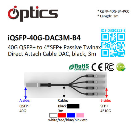 - iQSFP-40G-DAC4M-B4, 40G QSFP+ to 4x10G Breakout DAC(Direct Attach Cable) Cables (Passive) 4M